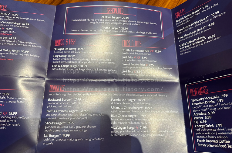 저희는 헬스키친 버거와 블루 치즈버거, 24시간 버거를 주문하였습니다.